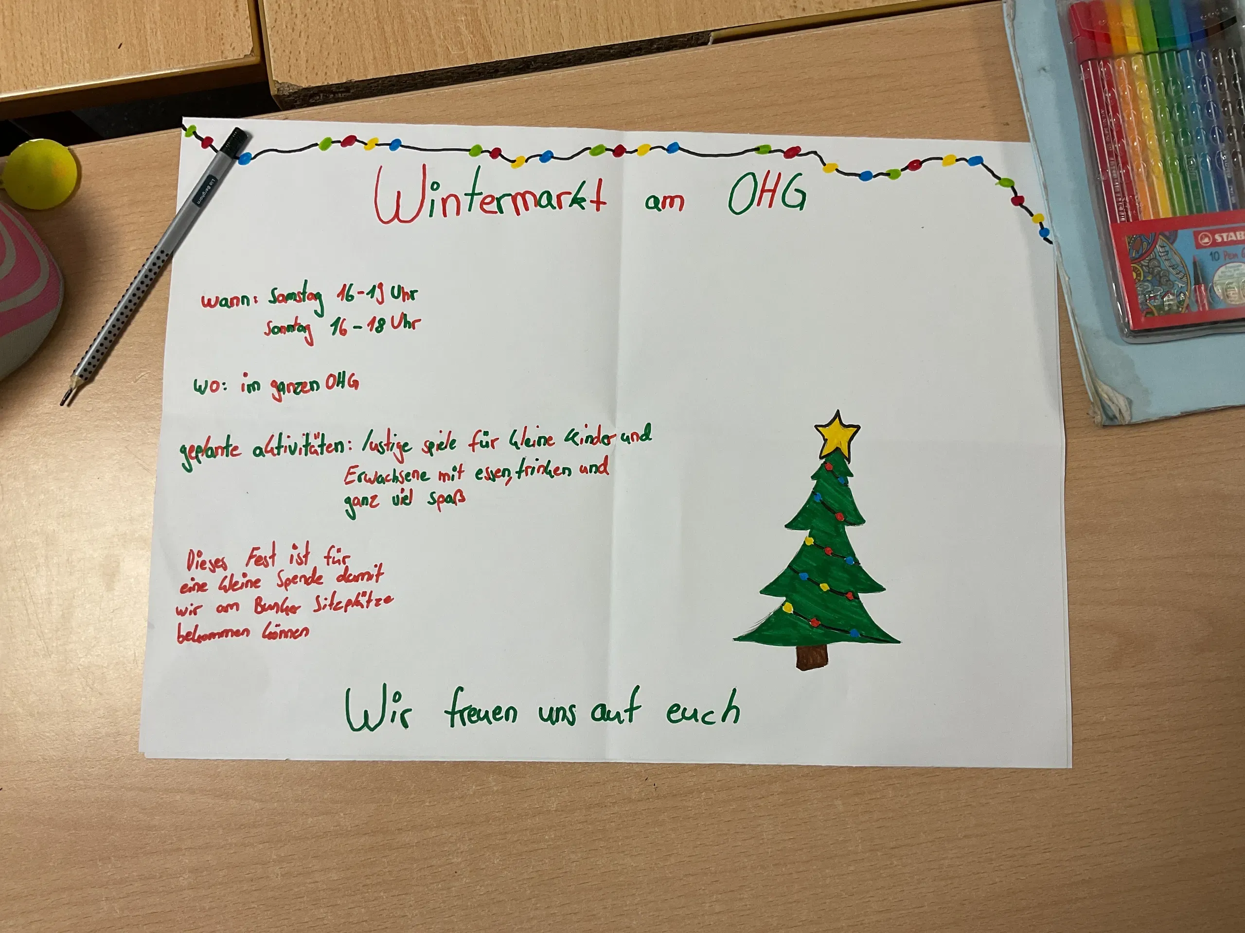 Wir haben uns das Projekt ausgesucht, weil wir wollen das die Schule mehr miteinander kommuniziert. Wir wollen ein Wintermarkt machen wo die ganze Schule mithelfen kann, aber die die nicht mit helfen möchten müssen nicht mithelfen. Beim Wintermarkt können Kinder und Erwachsene viel Spaß haben. Erwachsene können sich mit anderen Erwachsenen unterhalten und Kinder können sich mit anderen Kinder spielen. Das ist unsere Vorstellung von dem Wintermarkt, dass neue Freundschaften entstehen.
