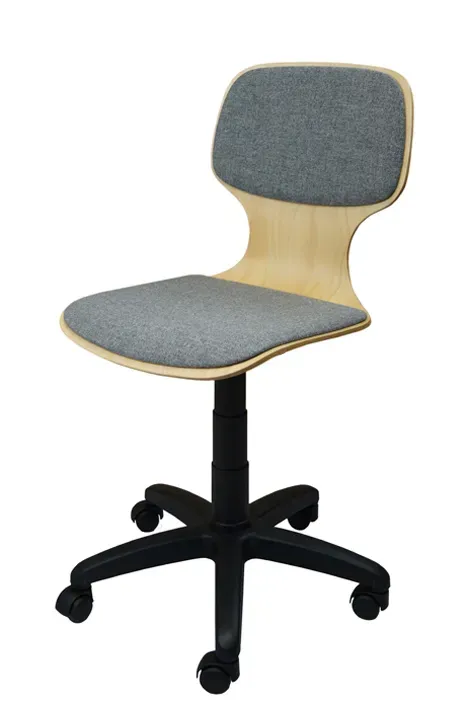 Stühle mit Rollen und Polster ohne Armlehnen.